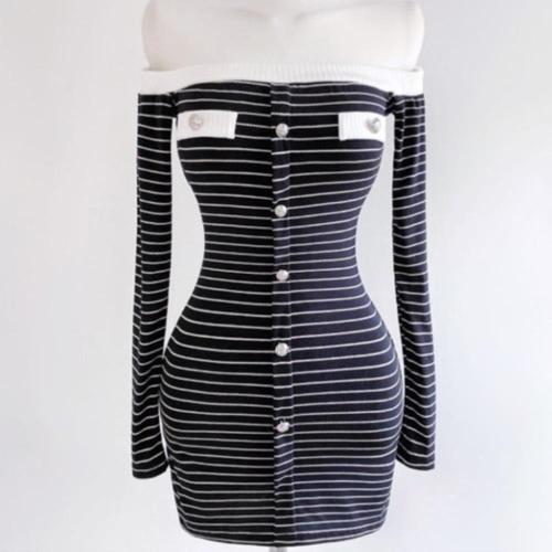 여성 단색 오프숄더 스판 미니 긴팔 드레스