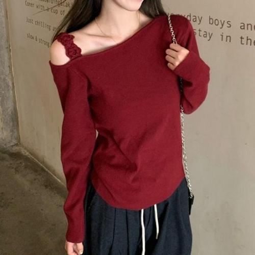 라라홀리 러블리 언발란스 오프숄더 슬림 골지 니트