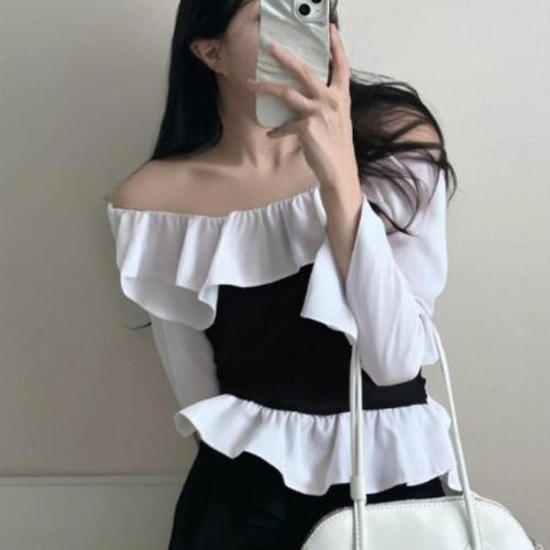 [옷자락] 여성 러블리 프릴 오프숄더 블라우스