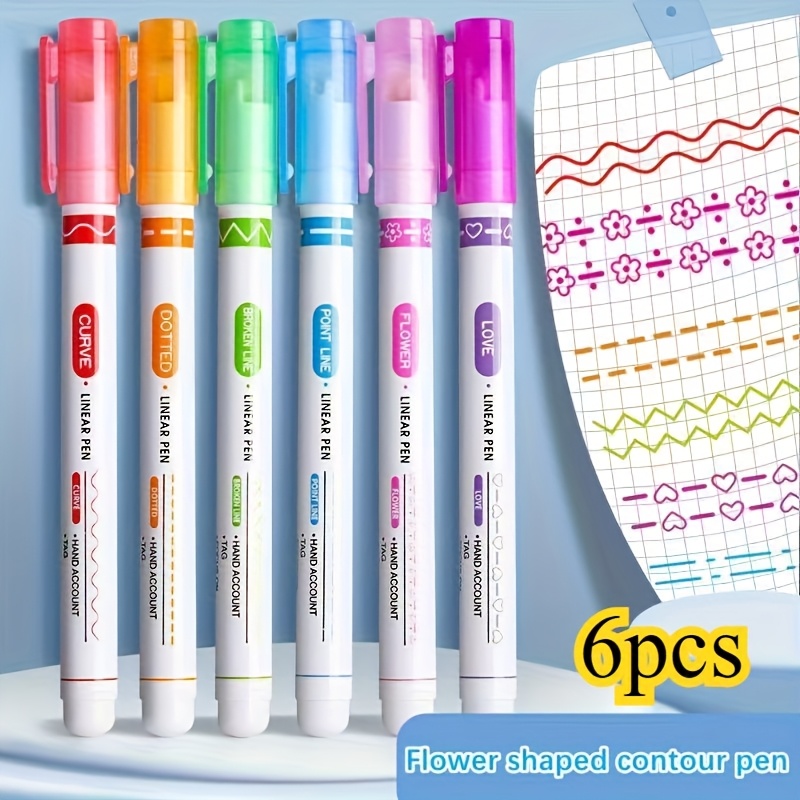 TEMU 6개입 더블헤드 커브드 롤러 펜 세트, 중간 니브, 플라스틱 표면, 표시용, 친구의 생일 선물, 데이 선물, 크리스마스 선물