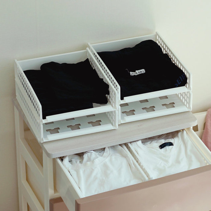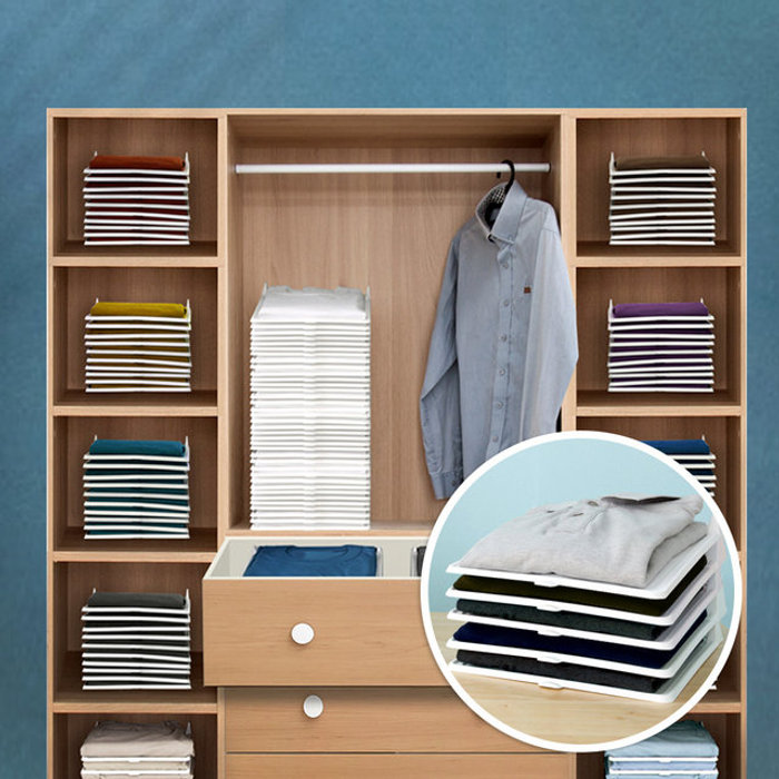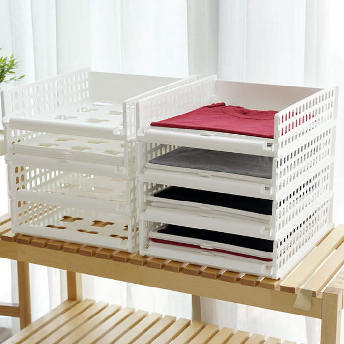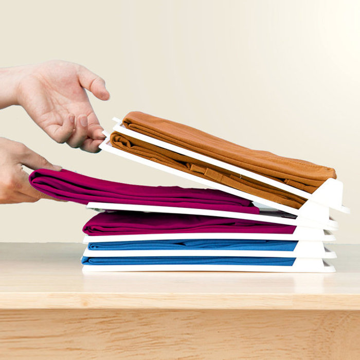 풀 슬라이딩 옷 정리 적층 트레이 소형 4개+옷접기 폴더 티셔츠 바지 치마 드레스룸 수납
