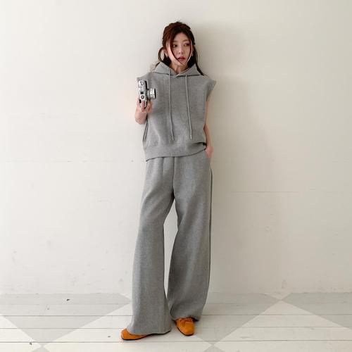 [시크블랙]마구일 후드 베스트 와이드 밴딩 팬츠 세트