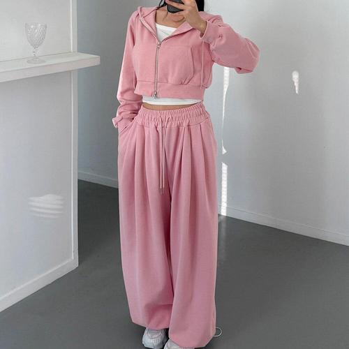 [옷자락]여자 힙한 크롭 후드집업 맥시 와이드 스토퍼팬츠 세트