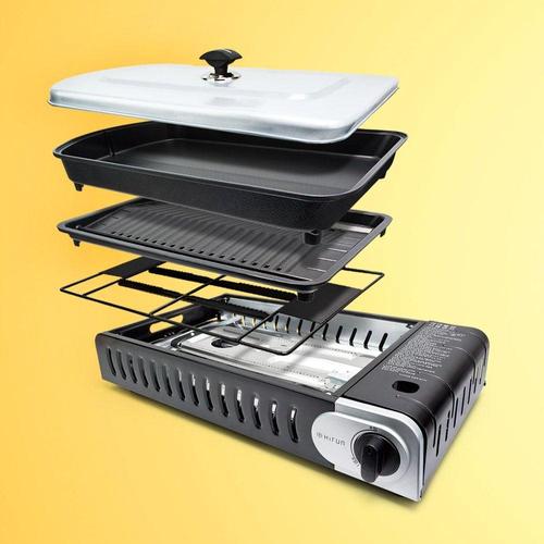 라니 가스그릴 와이드그릴 휴대용 바베큐 가정용 캠핑용 가스버너 전골냄비 포함