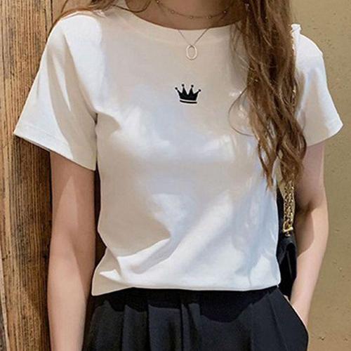 [셀러허브_여성트랜드패션]ONM 여성 티셔츠 왕관 라운드넥 반팔 티셔츠