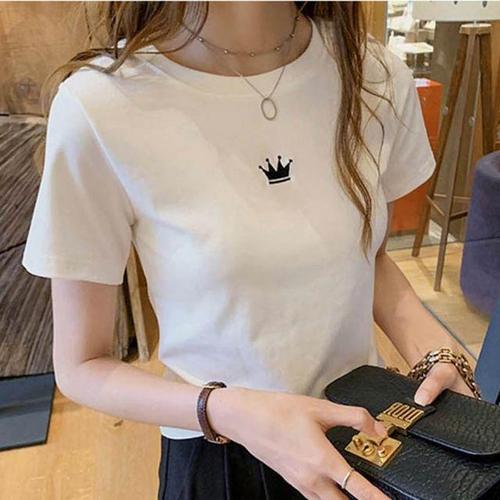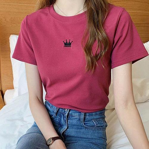 [OFL91R7O]여성 슬림 라운드 반팔 왕관 반소매 티셔츠