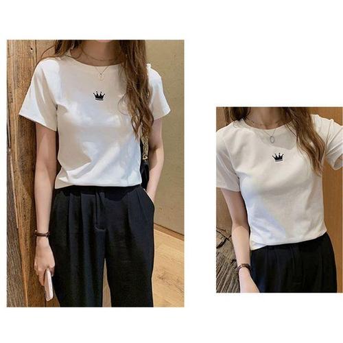 [OFL31MPR]여름 왕관 포인트 여성 슬림핏 반팔 티셔츠
