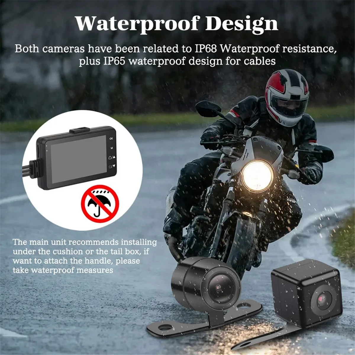 전면 후면 카메라가 장착된 WBELK 오토바이 DVR 대시 카메라 듀얼 비디오 루프 녹화 방수 오토바이 운전 레코더 캠
