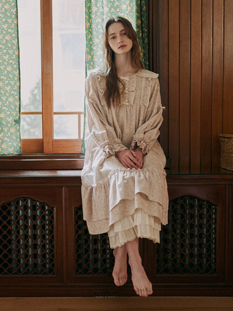 [울랄라파자마] 로즈리 긴팔 원피스 베이지 (30수)