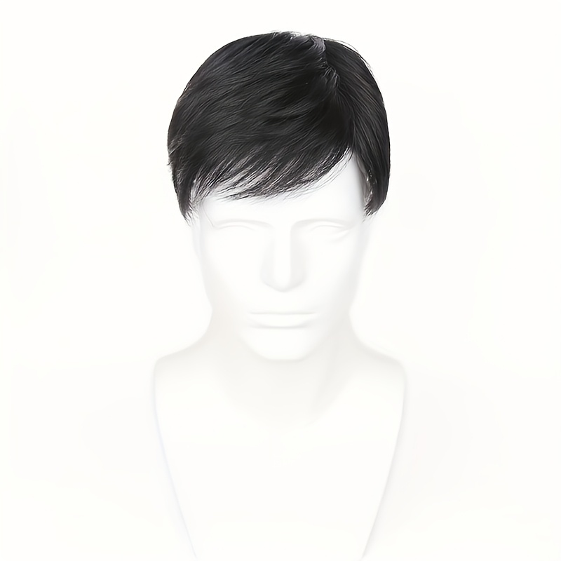 TEMU 세련된 3-7분할 스타일의 남성용 숏 가발, 보이지 않는 가볍고 통기성 좋은 실제 인모 상단 헤어피스 특징