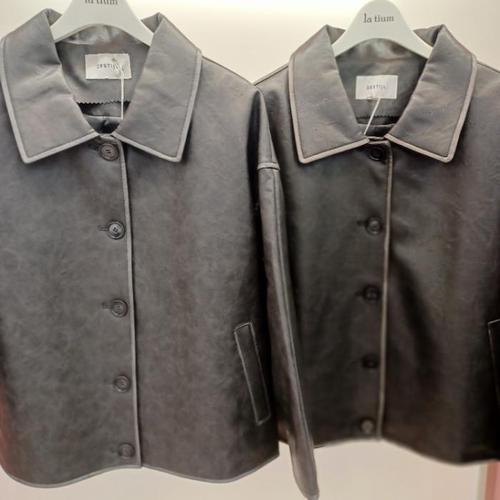 [라티움]Destijl HC06 크롭 라이더 레더 워싱라인배색 깔끔한 카라 가죽 점퍼형 쟈켓 D2553jk01 (41109974)