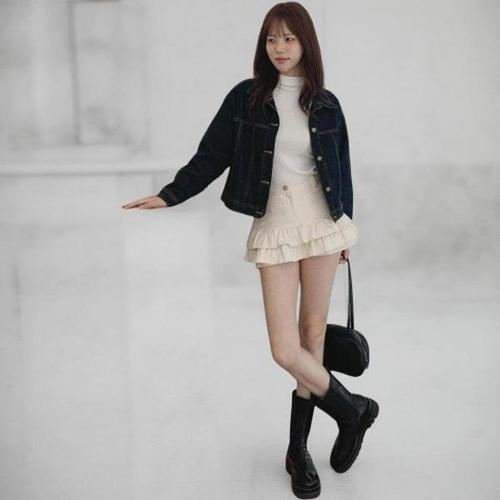 [다잇템][다잇템] 여성 키치무드 빅사이즈 세미크롭 코튼 워싱 청자켓_23740604_588872
