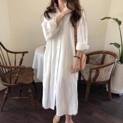 [다잇템_패션]여성 빅사이즈 카라넥 마원단 남방 롱 원피스