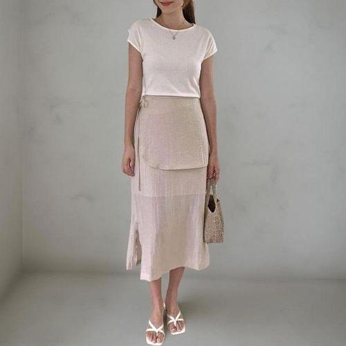 [다잇템]여성 마원단 롱 랩 레이온 스트랩 일자 스커트
