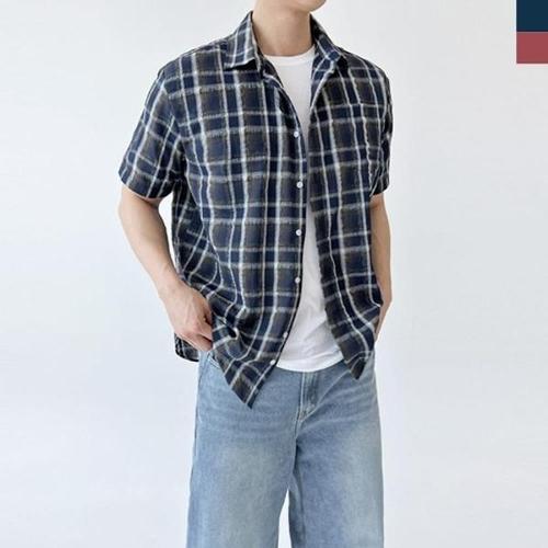 [다잇템][다잇템] 남성 콘트라스트 베이직 반소매 마원단 카라넥 격자 셔츠_22411604_588872