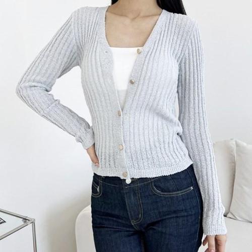 [다잇템]여성 슬림 멀티컬러 V넥 마원단 가디건