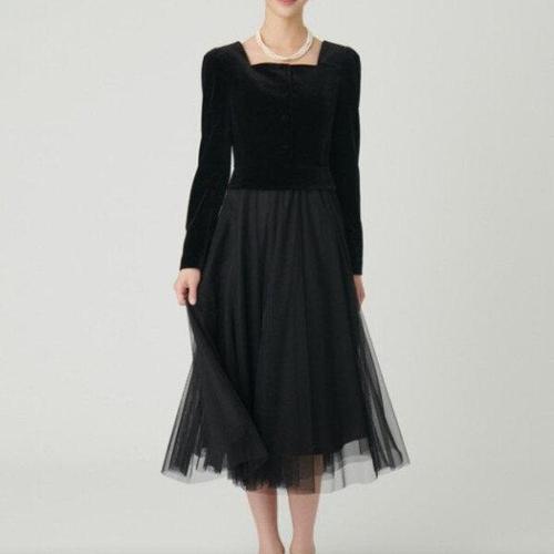 [샤틴]스퀘어넥 진주목걸이셋 벨벳 샤원피스S244B655A_JK