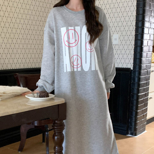 에르디테 / 여성 기모 프린팅 루즈 오버 핏 빅사이즈 롱 원피스 겨울 홈웨어 3컬러