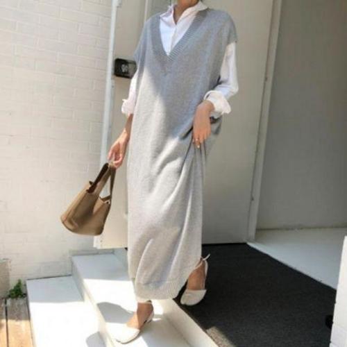 이쁘다요 박시하고 루즈한 롱 니트 원피스 조끼 WFLMEM9
