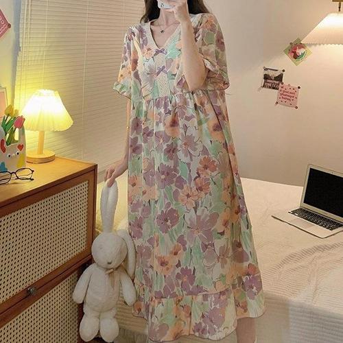블랑드 빅사이즈 여름 레이스 브이넥 면 원피스 잠옷