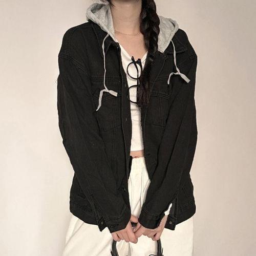 [모노무드]LMO 우먼 스타일 후드탑이지웨어 탈부착 자켓 데님자켓