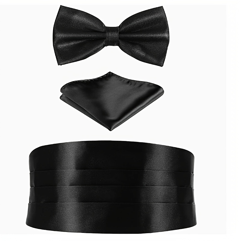 TEMU 남성용 셀프 타이 보우 타이, Cummerbund, 포켓 스퀘어 3종 세트 | 웨딩 택시 정장에 어울리는 우아한 액세서리, 신랑 및 신부님을 위한 적합한 선택.