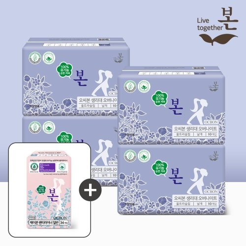 유기농본 생리대 오버나이트 10P 4팩+라이너 1팩