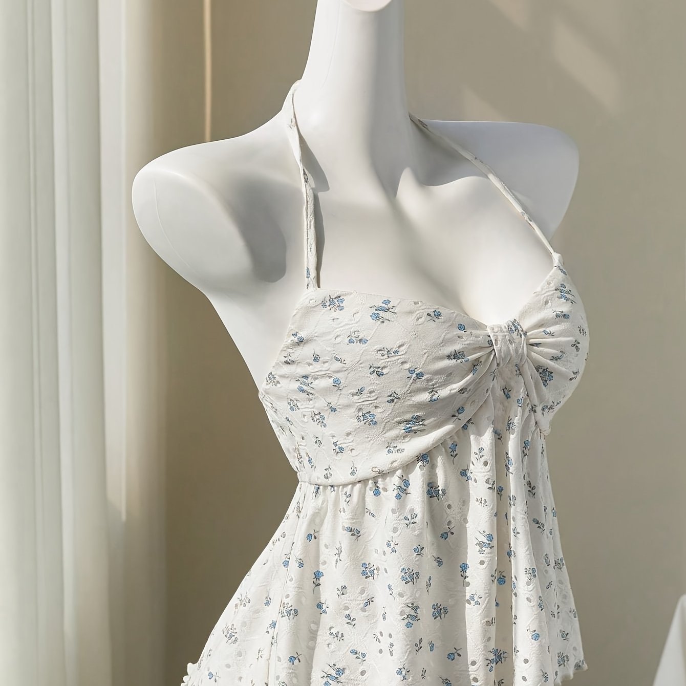 TEMU 여성용 비대칭 밑단 민소매 단색 홀터 미니 드레스, 스타일 넘버 99032917