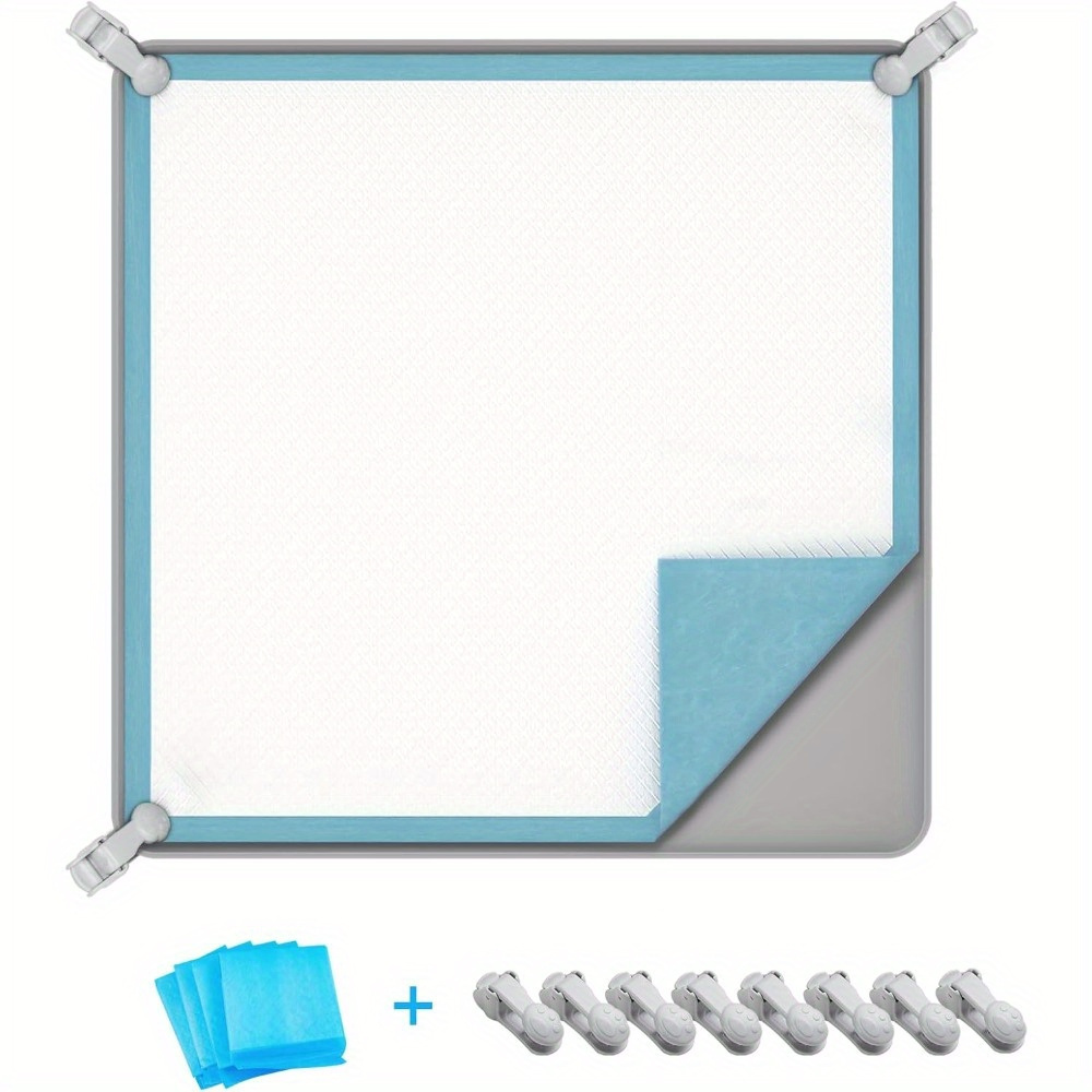 TEMU 강아지 배변 패드 보관 트레이, 미끄럼 방지 디자인, 최대 24" X 24"까지의 훈련 패드 수용, 쉬운 패드 교체를 위한 높은 가장자리, 클램프 8개 및 강아지 화장기 패드 4개 포함
