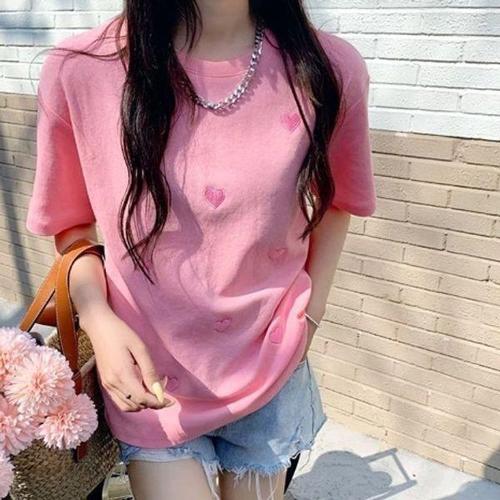 [모노무드]LMO 하트 우먼 하프티 티 엠보 폴리 레이디하프티 스타일 3색