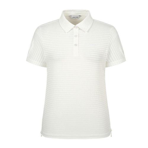 [핑]여성 엠보 스트라이프 셔링 카라 반팔 티셔츠 121E2TO452_WH_IC