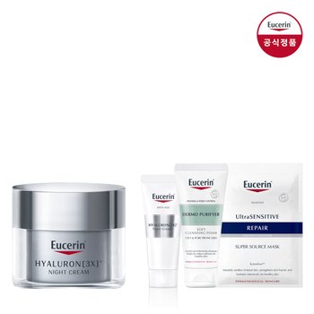 [유세린] 유세린 하이알루론 3X나이트크림 50ml 더블팩 [증정]더모퓨리파이어 오일컨트롤 토너 200ml + 더모퓨리파이어 클렌징 폼 50g + 울센마스크팩 1매