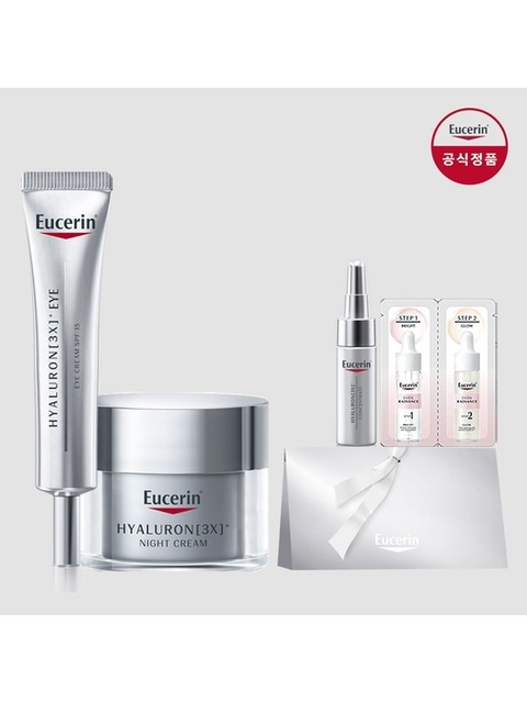 [유세린] 유세린 하이알루론 3X 아이크림15ml + 하이알루론 3X 나이트크림 50ml [증정]하이알루론 컨센트레이트 미니 5ml + 듀오앰플 샤쉐 1매 + 실버삼각박스