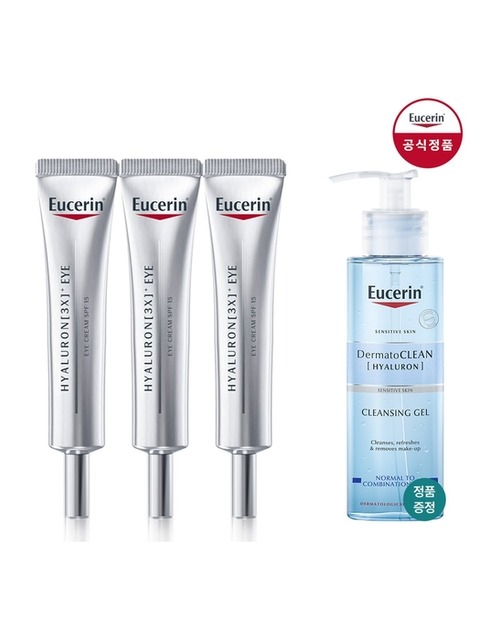 [유세린] 유세린 하이알루론 3X 아이크림 15ml 트리플팩 [증정]더머토 클린 리프레싱 클렌징 젤 200ml