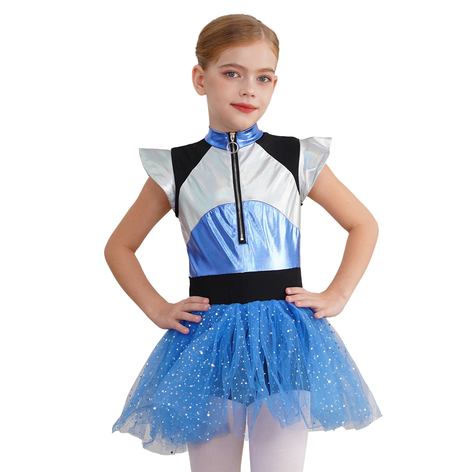 키즈 소녀 치어 리더 유니폼 치어 리더 정장 의상 반짝 이는 발레 투투 드레스 바디 슈트 외계인 우주 로봇 코스프레 의상