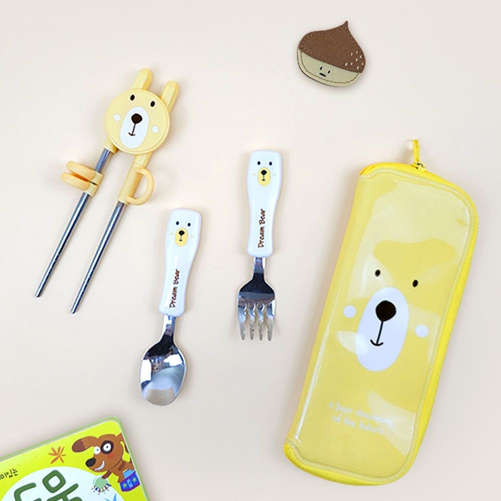 곰돌이 꼬마 국산 스텐304 스푼포크 수저 케이스 세트 자기주도 유아 유치원 이유식 숟가락