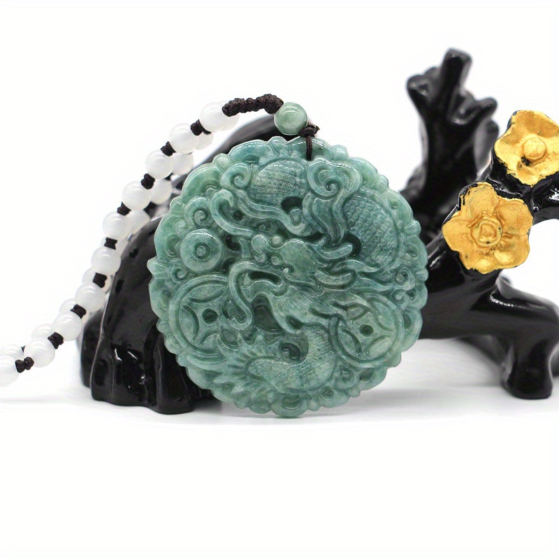 TEMU 남성 및 여성용 조각된 용 무늬 둥근 천연석 펜던트 1개