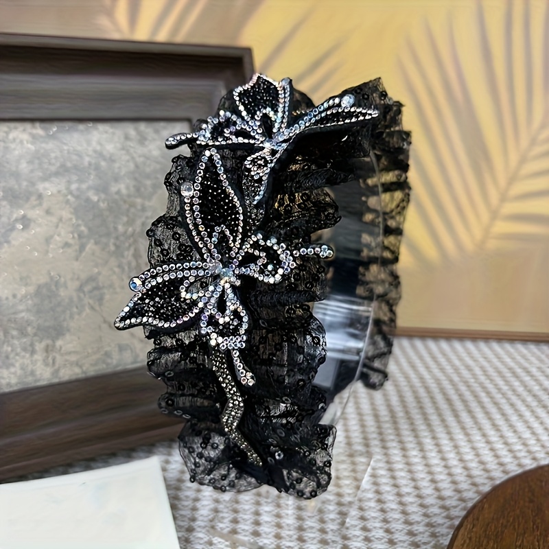 TEMU 1개 우아한 빈티지 레이스 헤어밴드, 라인스톤 나비 디테일 - 미끄러지지 않는 여성용 헤어밴드, 데일리 웨어, 특별한 날, 데이 선물 - 단일 품목