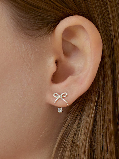 [르웨] [6mm+10mm 진주귀걸이 증정] Dot ribbon two-way earring (Silver/Gold)