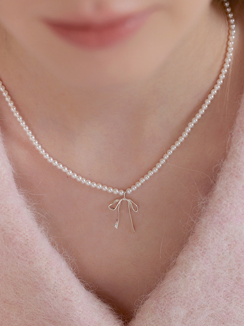 [르웨] [6mm+10mm 진주귀걸이 증정] Tie ribbon pearl necklace (Silver/Gold)