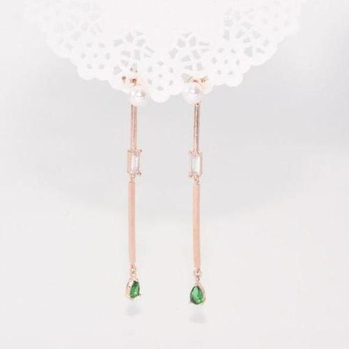 [셀러허브_여성트랜드패션]ONM 그린포인트 큐빅 진주귀걸이(92.5실버침 로즈골드)