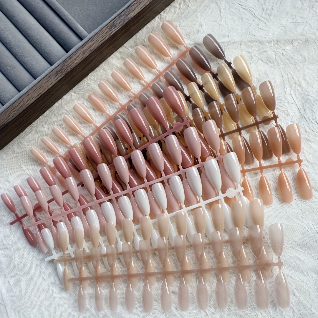TEMU 120/240개 검정색 인조 손톱 | 중간 길이 아몬드 모양, 광택 마감, 데일리 착용을 위한 기계 제작 인조 손톱