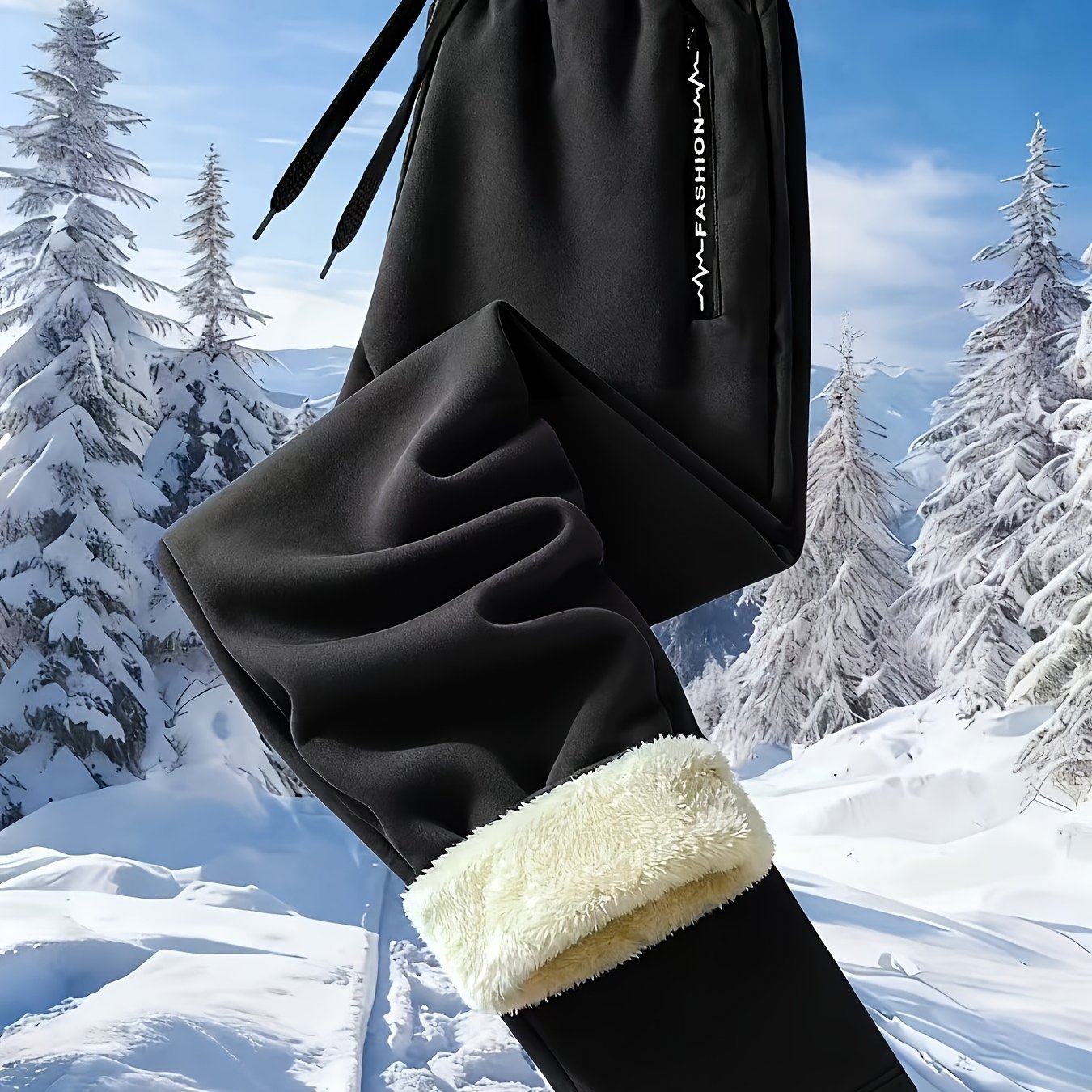 TEMU 여성용 두꺼운 겨울 바지 - 신축성 없는 와이드 레그 트라우저, 탄성 허리 밴드, 추운 날씨, 사무실, 파티용 긴 기장