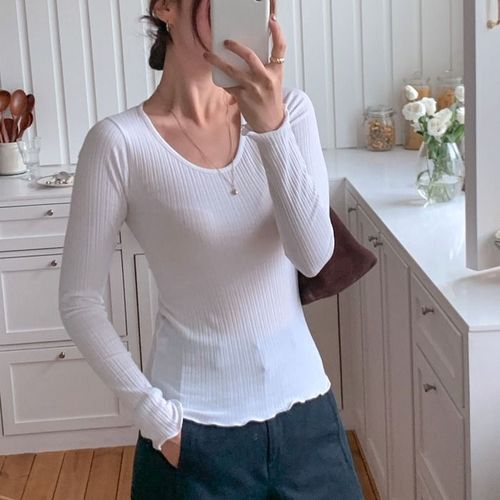 플러리싱 / 슬림핏 스판 골지 프릴 이너 긴팔티 플러리싱