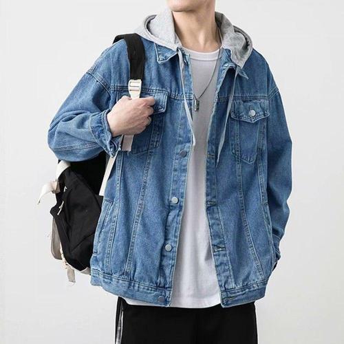 탈부착 후드 아우터 간절기 루즈핏 데님 남자 청자켓 WFLDIKI