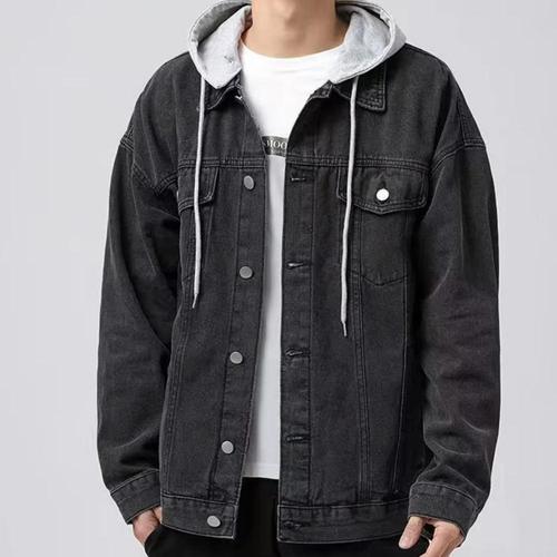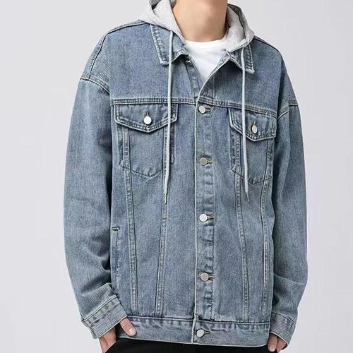 남성용 탈착 후드 데님 재킷 캐주얼 아우터 WFLMFUV