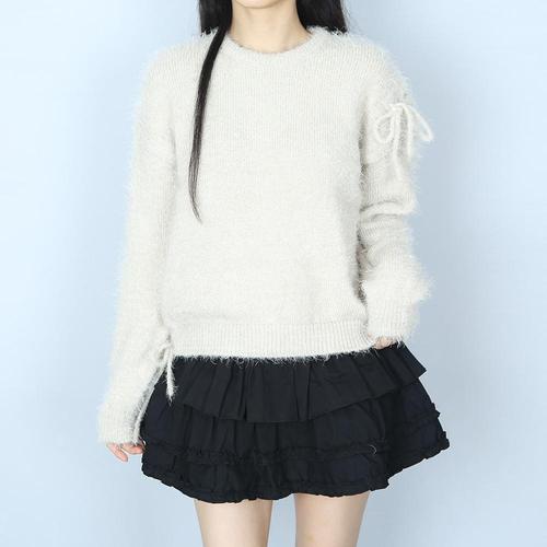 [파라노말샵]5색 솔잎 부클 트임 리본 니트티 (파라노말샵)