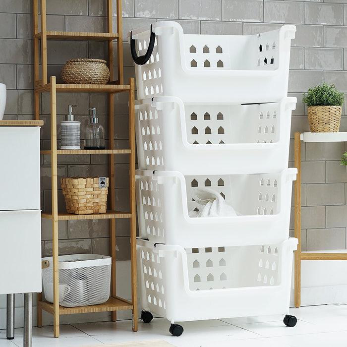(선택 3단 화이트)다용도 거실 적층 수납함 바퀴형 플라스틱 정리함