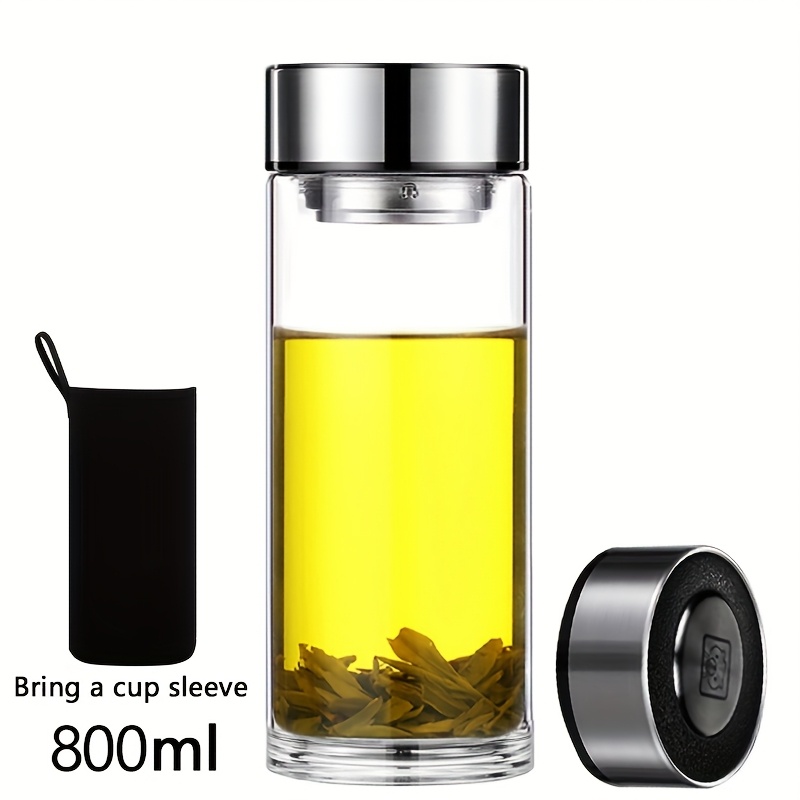 TEMU 1개 1단 유리컵 밀폐 주방 차 제조 물컵 물 세트 다용도 용량 내구성 필터 냉수컵 남녀 공용 휴대용 차 세트 차량 야외 물병 컵 덮개 포함