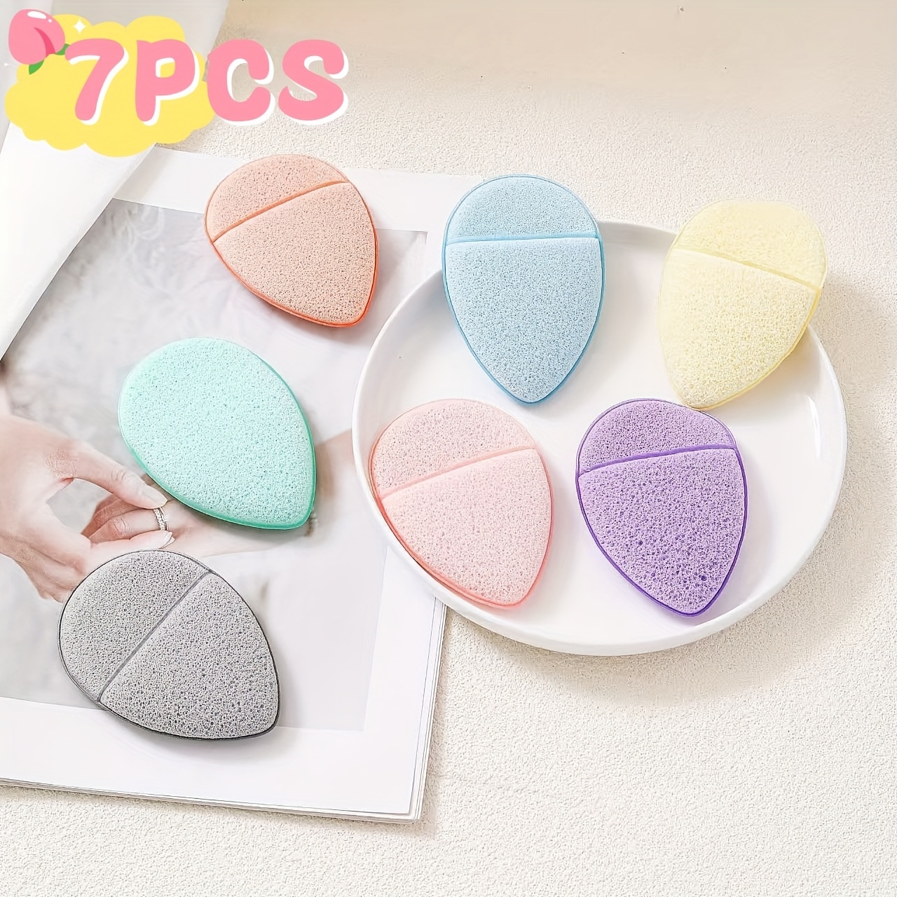 TEMU 7개입 딥 클렌징 및 각질 제거 페이셜 스펀지 | 색상 및 모양 랜덤, 재사용 가능, 친수성 PU 소재, 블랙헤드 및 깊은 오염 제거, 일반 피부 타입에 적합, 뷰티 및 스킨 케어에 이상적